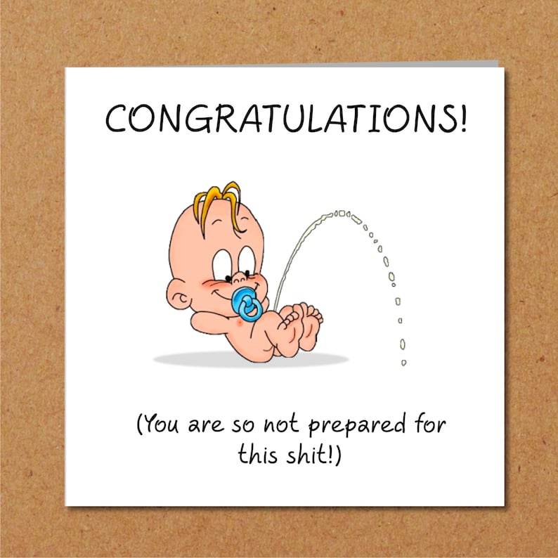 Congratulations On New Baby Card Funny New Birth Card Amusing Humorous Cartoon Parents Mum Dad Pee Poo Poop
